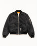 Reversible bomber jacket in durable water-repellent nylon with a quilted lining. Relaxed fit featuring a sleeve pocket. exterior flap pockets and interior welt pockets. Embroidery at the lower front.