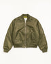 Reversible bomber jacket in durable water-repellent nylon with a quilted lining. Relaxed fit featuring a sleeve pocket. exterior flap pockets and interior welt pockets. Embroidery at the lower front.